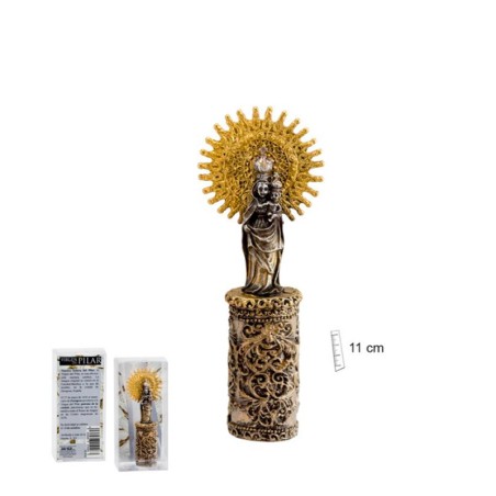 Réplica de la figura de la Virgen del Pilar, en resina y presentada en una caja, con una breve historia de su vida. Festividad 12 de Octubre.