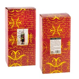 Rosario "Cristo de Medinaceli" en lata de metal, con rosario en madera y metal de diferentes colores: negro, burdeos, marrón y marrón claro. La cajita puede también servir como pastillero. Por detrás de la cajita viene una breve historia del Cristo de Medinaceli. Mide: 50 cm de largo. del rosario. Medida de la caja: 50X50 cm