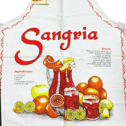 Delantal típico español, con la mejor receta de sangría Es de algodón 100%. Ideal para los amantes de la gastronomía española y de la cocina en general. Talla única para adultos. ¡Consigue un recuerdo único con nuestros delantales souvenirs!