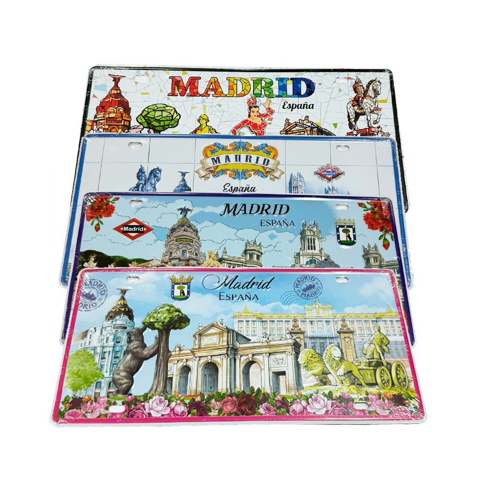 Plaque de décoration en métal "Monuments de Madrid", assiettes à décorer comme un joli souvenir de Madrid, avec des monuments emblématiques de Madrid comme la Puerta del Sol, la rue Gran Vía et La Cibeles, l'Ours et l'Arbousier, la Puerta de Alcalá.