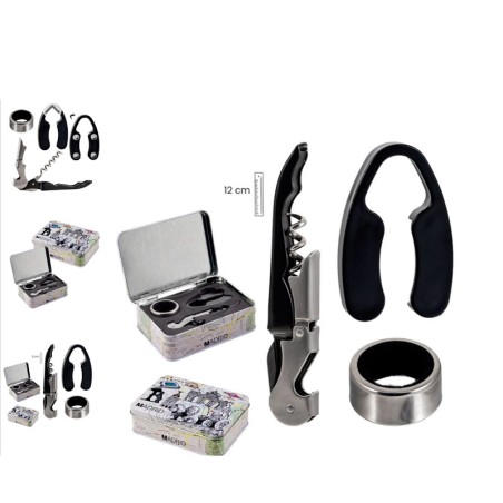 Coffret à vin Lata Madrid avec ouvre-bouteille, anneau anti-goutte et capsule courte pour la bouteille.