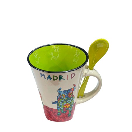 Des tasses coniques ou mug "El Toro", trencadís technique, avec une cuillère inclus et en deux tailles et plusieurs couleurs. 300ml