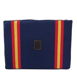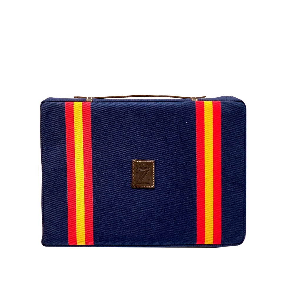 Coussin pour aller au taureau modèle couleur bleu "Deux drapeaux de l'Espagne". Le tissu est bleu marine et le revers est en polipiel de la même couleur bleu, avec le manche en cuir et la fermeture éclair. Il est lavable à l'eau froide et nous garantissons les meilleurs matériaux de qualité. Il est fabriqué en Espagne.