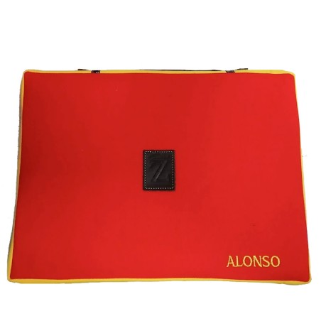 Coussin corrida "Drapeau d'Espagne"´bandes rouges et jaunes, est l'endroit idéal pour être à l'aise dans les arènes, dans la solution de stade de football ou le champ. Le tissu lonet couverture et l'inverse est en cuirette rouge, a une poignée en cuir et fermeture éclair.