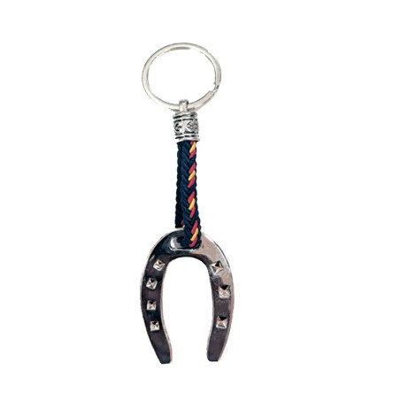 Porte-clés avec des fers à cheval metal, deux modèles: couleur fuchsia (Capote) ou bleu (drapeau Espagne). Fabriqué en Espagne.