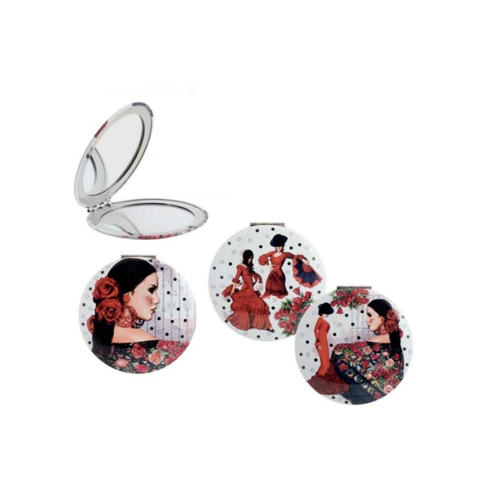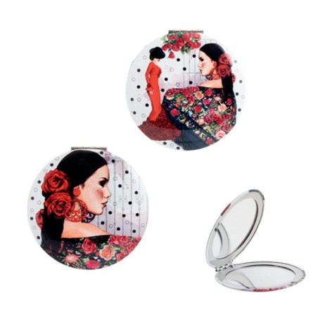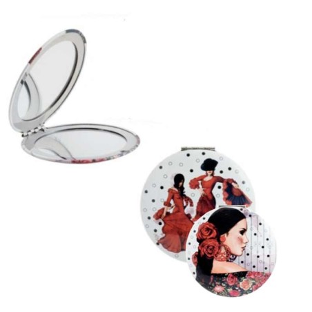 Miroir de poche élégant "Flamenca" à transporter dans le sac, avec un miroir grossissant pour une belle apparence. Souvenirs d'Espagne.