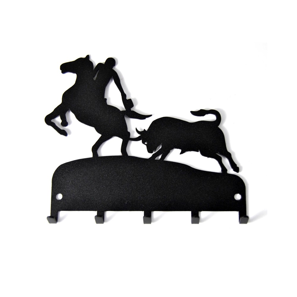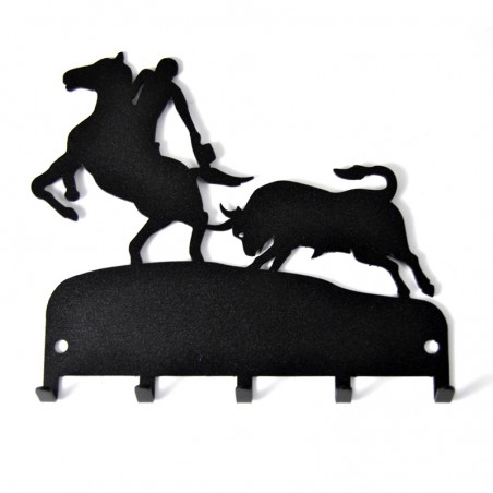 "Rejoneador" wrought iron key hanger, beautiful and elegant, hang keys in two colors black and red, with five hooks for your house, farm or to give to the most bullfighting.