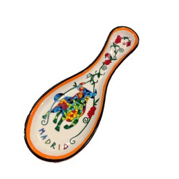 Support ceramic spoons with a beautiful design of the "Toro de Trencadís" with the inscription of Madrid, to take a nice souvenir, have a colored border around it, to match the colors of your kitchen. Dishwasher safe.