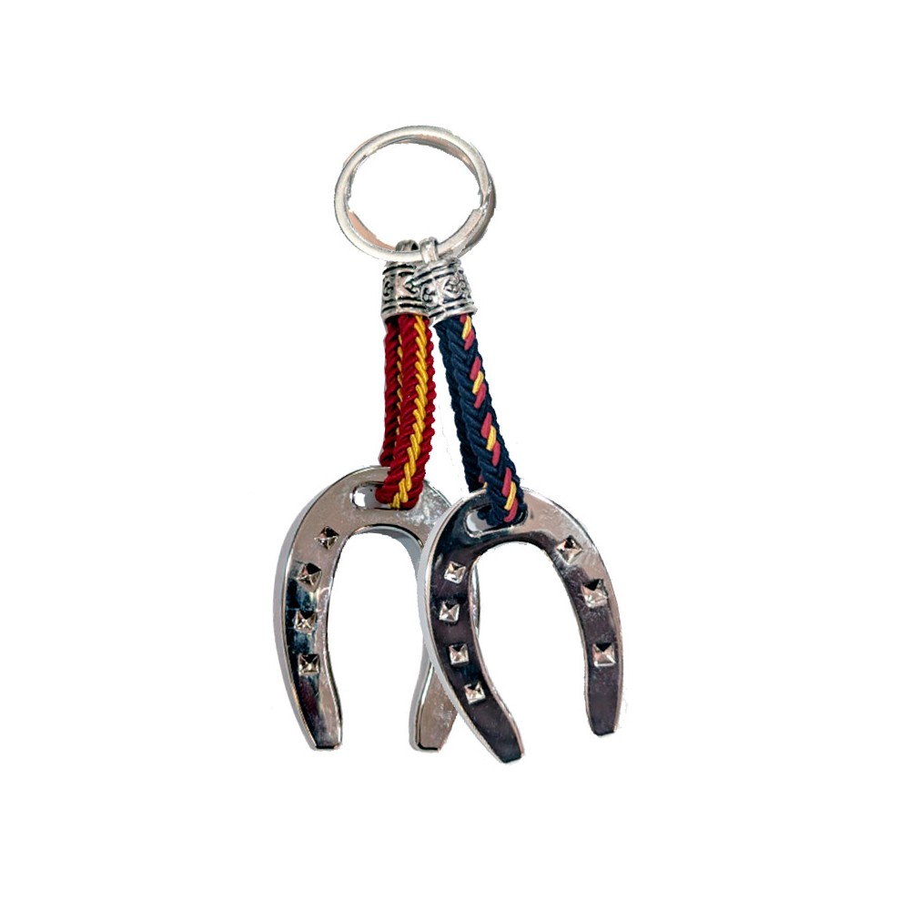 Horseshoes metal Keychain, two models: capote color or blue with flag of Spain, . Perfect gift for lovers of horses and bulls. Made in Spain.