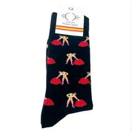 "Bullfighter passes" socks three colors in navy blue, fuchsia and green. Fun and very original socks, ideal to give to the most Spanish. They are mid-calf height. Combed cotton composition. Made in Spain.
