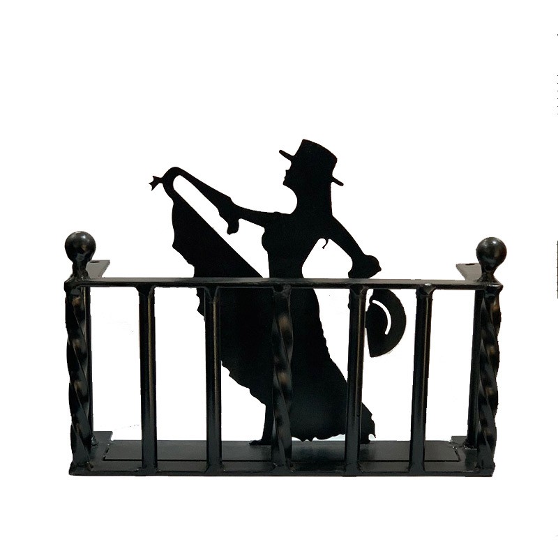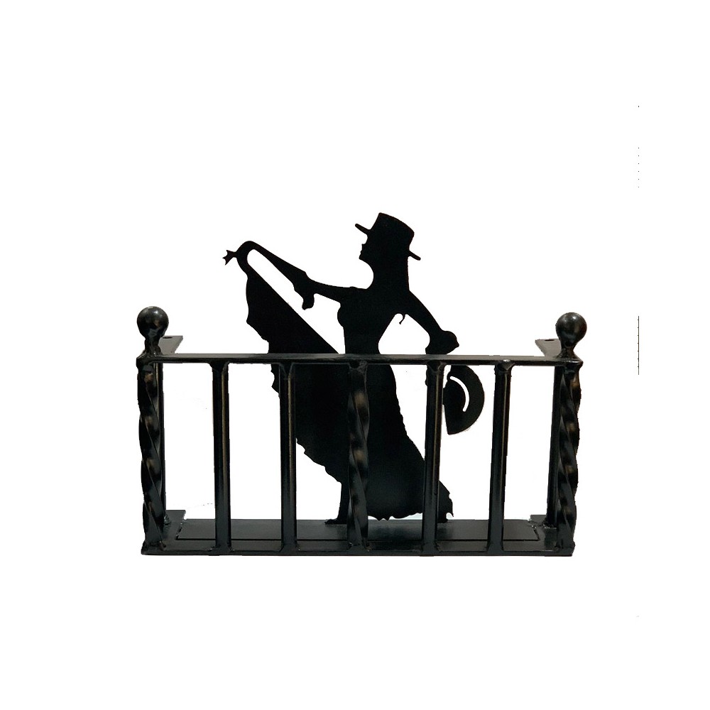 Silhouette of a beautiful "Bailaora with a Cordovan hat and fan behind the Balcony" in iron, handmade in Spain. As a decoration, it is an original gift as a Souvenir from Spain to hang or as a desktop.