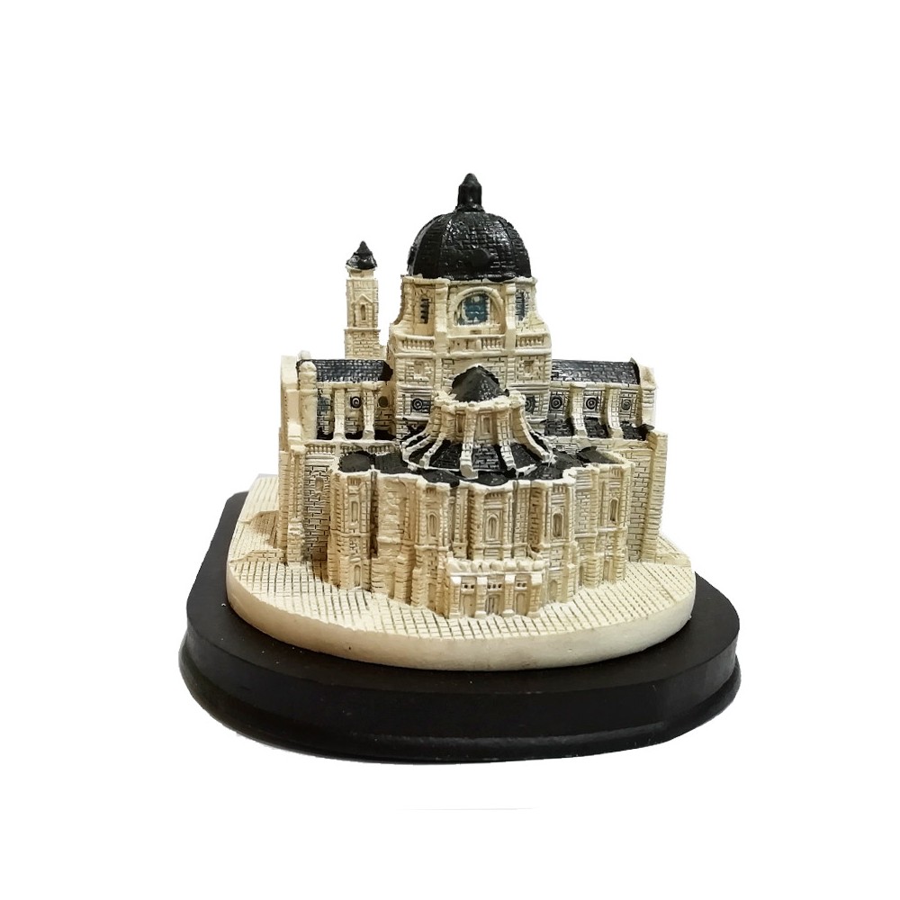 This resin replica of the Almudena Cathedral represents a miniature version of Madrid's Almudena Cathedral.