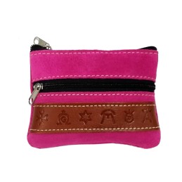 Suede purse "cattle irons", Double zipper. Of different combinations it is made of suede and leather strap with symbols of livestock irons. Due to its size, it is ideal for coins or cards.