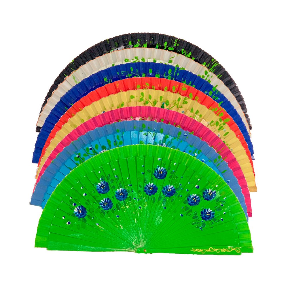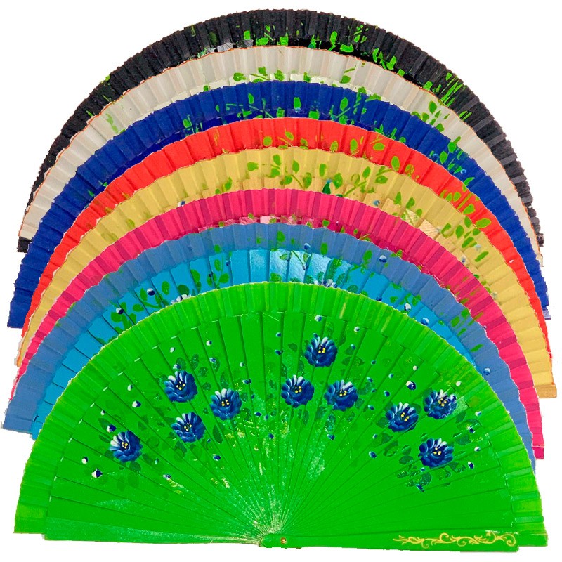 Fans of varnished wood, on both sides and decorated with floral motifs in different colors. Beautiful and elegant spanish fan. ZiNGS offers you the typical Spanish fan, so you have a useful souvenir from Spain. In hot weather, get out your fan and cool off.